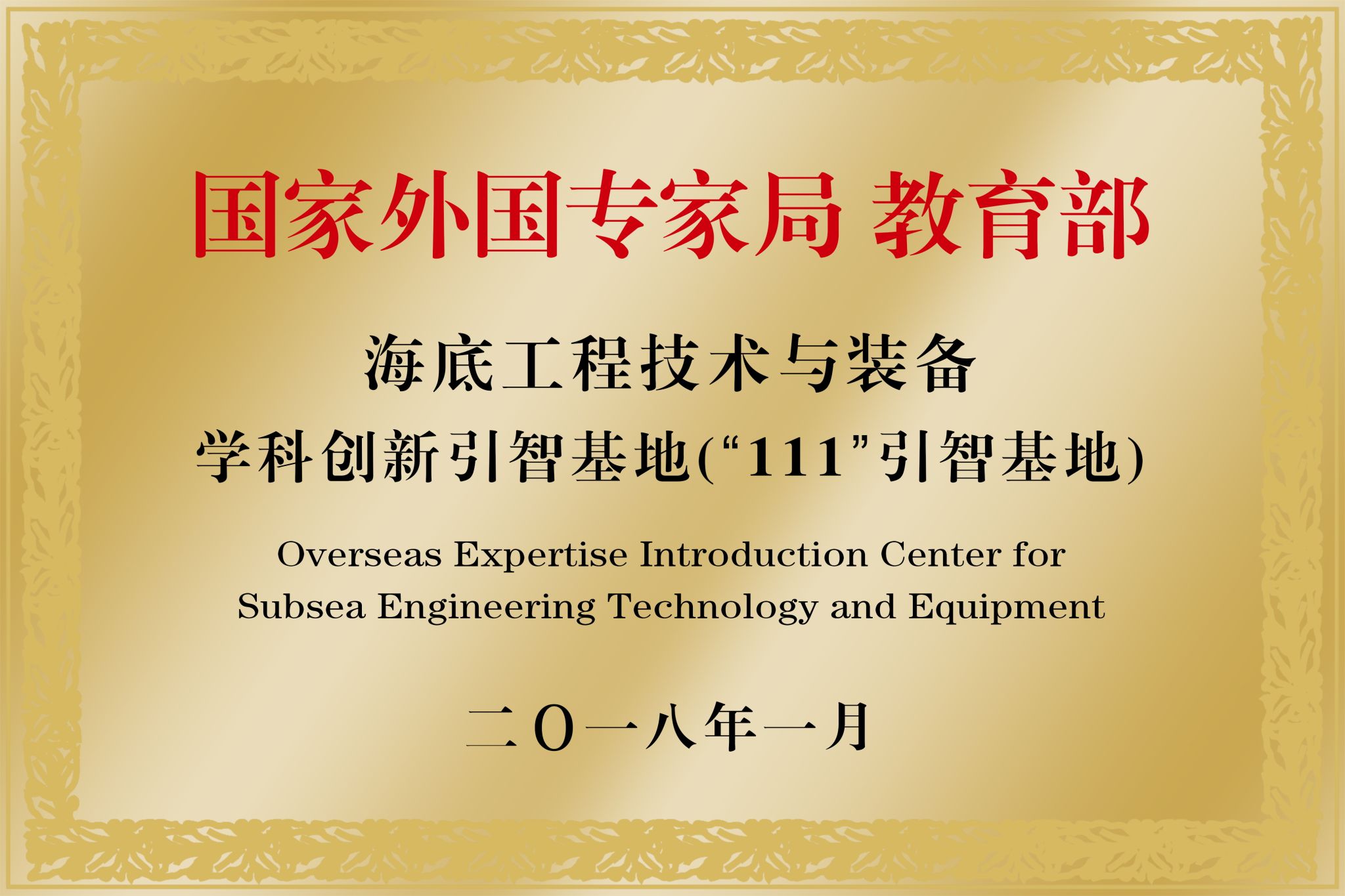 2018年获批“高等学校学科创新引智计划”(“111计划”)“海底工程技术与装备学科创新引智基地”,基地以船舶与海洋工程为主干学科、以交通运输工程、信息与通信工程、控制科学与工程、机械工程、材料科学与工程等为支撑学科,重点围绕海底工程水动力研究、海底工程关键部件(系统)设计制造技术研究、海底工程装备密封与防腐技术研究、水下生产控制系统研究、水下应急保障与处置技术研究五个研究方向开展与国外知名高校、科研机构及高水平学术专家的交流合作。