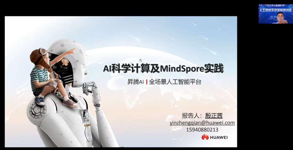 最后,大连人工智能生态创新中心高级技术算法工程师李成做了题为《AI平台ModelArts操作演练》的昇思MindSpore架构相关报告,对人工智能学院本科生和研究生同学做了较为详细的培训和指导。