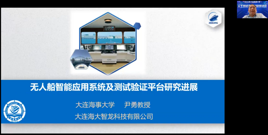 尹勇教授作题为“无人船智能应用系统及测试验证平台研究进展”的报告。他先对智能船舶国内外研究现状展开详细介绍,接着介绍了岸基中心及其无人船仿真测试平台、船用智能导航系统、智能货物管理及配载系统、智能船态势感知系统。