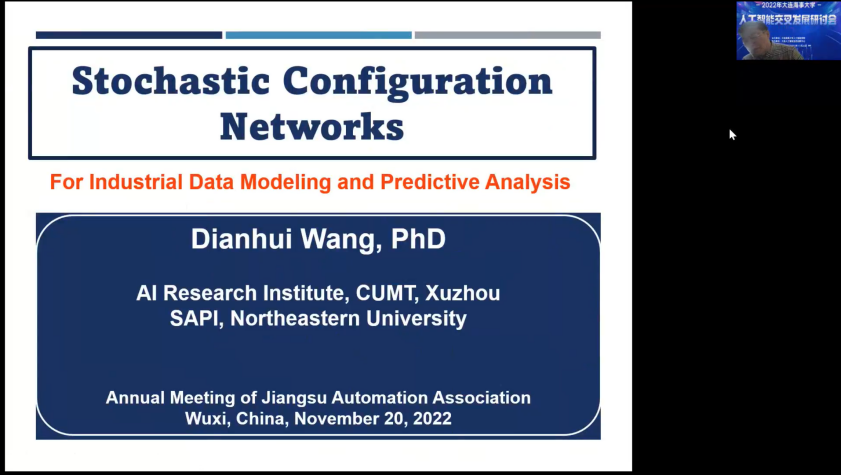 王殿辉教授作题为“随机配置网络”的报告。他表示,BP并非理想的学习算法,其对工业的应用有局限性,我们应该研究有个性化的学习技术来真正促进工业人工智能。他首先讲述了BP的影响以及它是否适用于工业应用,接着介绍并演示了Stochastic Configuration Networks,最后对工业AI的前景展开介绍。