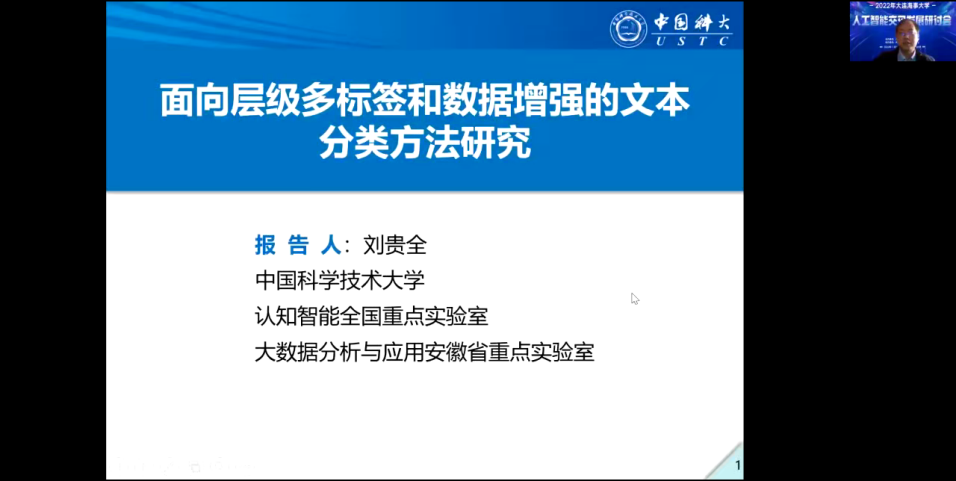 刘贵全副教授作题为“基于深度学习与数据增强的层级多标签文本分类方法研究”的报告。他表示,分类问题始终是机器学习和大数据分析的重要研究内容之一。在报告中,他介绍了文本分类的背景和现状、相关定义和存在的问题,并对约束场景的层级多标签文本分类、开放场景的层级多标签文本分类和基于数据增强的文本分类进行了详细的讲解,最后对应用作以总结并解答老师提出的问题。