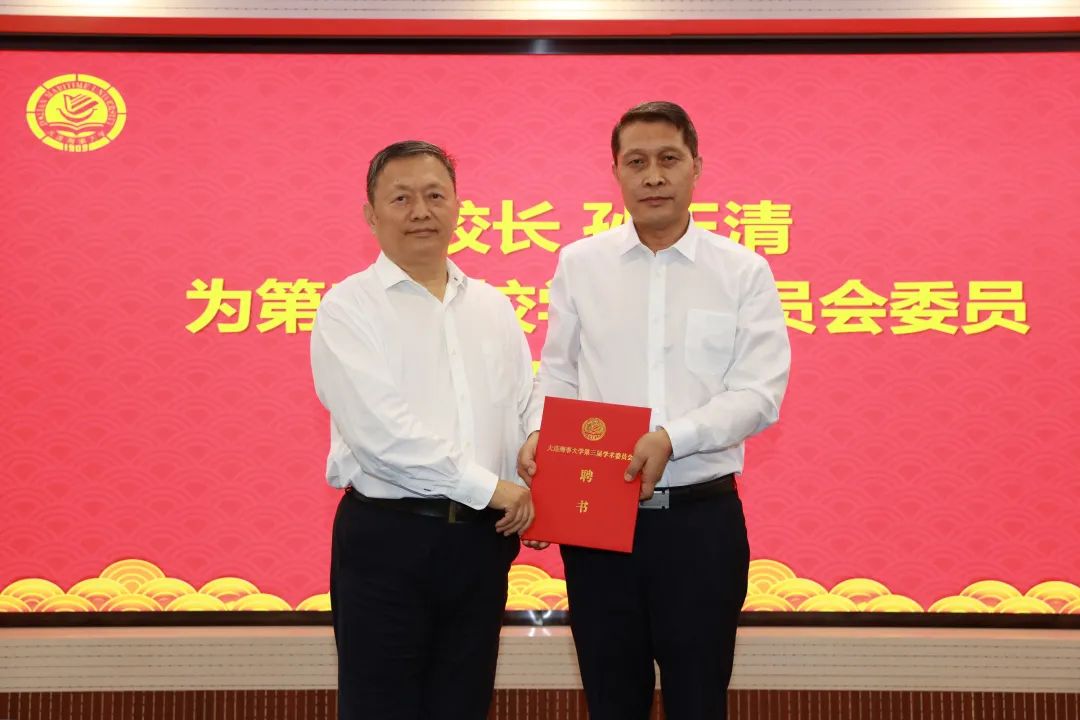 孙玉清为新当选的第三届校学术委员会主任委员、副主任委员、委员颁发聘书