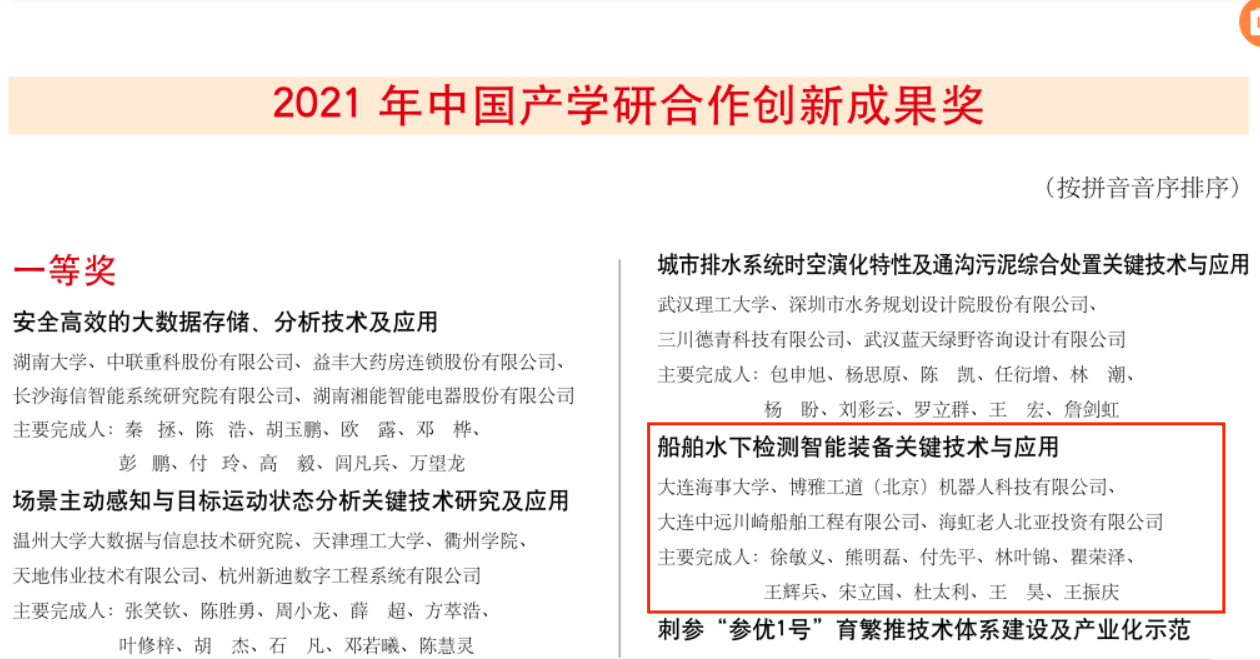 近日,中国产学研合作促进会正式公布了2021年度产学研合作创新成果奖评选结果。我校轮机工程学院徐敏义教授团队“船舶水下检测智能装备关键技术与应用”获得一等奖,航海学院尹勇教授团队“全任务多船协同航海模拟器开发平台与应用”获得二等奖,轮机工程学院王生海博士团队“高海况下大件吊装防晃装置研制与应用”获得优秀奖。