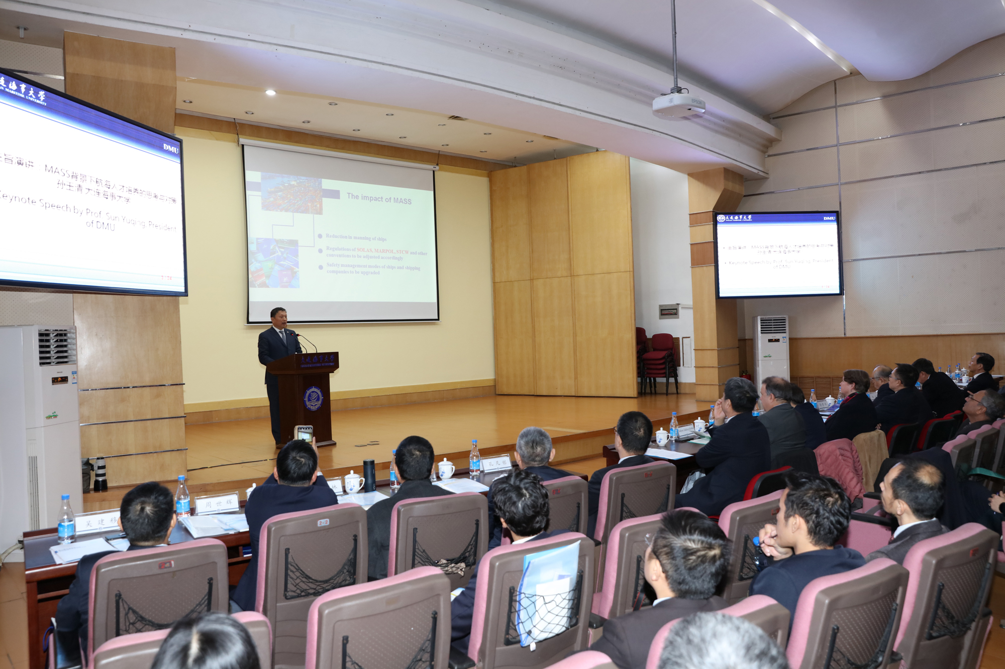 在会议的主旨演讲部分,欧亿体育·(中国)官方网站校长孙玉清进行了题为“MASS(Maritime Autonomous Surface Ships,简称MASS)背景下航海人才培养的思考与对策”的主旨演讲。阐述了国内航海类高校面对自主船舶新形势的思考,并提出了对于航海类人才培养改革和中国航海教育发展的建议。