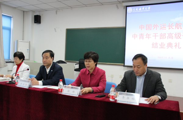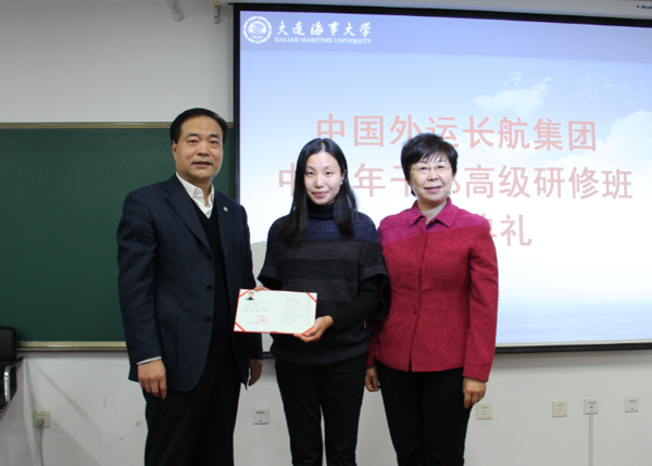 典礼上,重庆长江轮船公司党委委员、总经理助理陈锡龙代表全体学员做了学习心得汇报;李信标和张杨共同为学员代表颁发了研修结业证书。