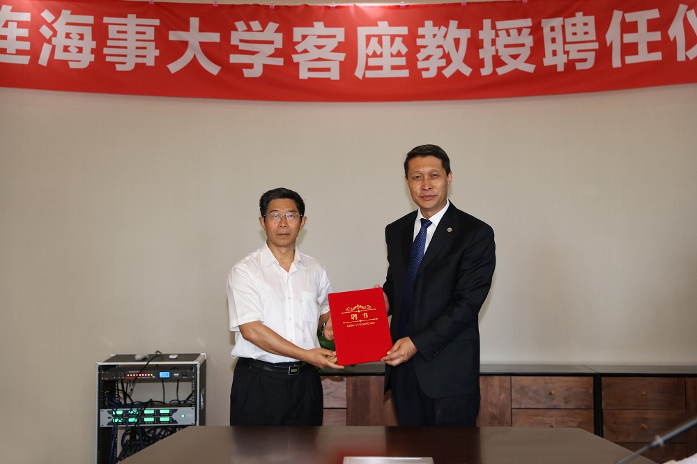 研讨会开始之前,首先举行了聘任交通运输部原巡视员、海峡两岸航运交流协会常务副理事长王明志为我校客座教授的仪式。赵友涛表示,王明志在海事法律法规方面具有扎实的理论基础与丰富的工作实践经验,此次聘任,将对法学人才培养以及学科建设发展起到积极推动作用,并为王明志颁发聘书、佩戴校徽。王明志对学校的聘任表示了衷心的感谢,并表示在今后工作中,将尽自己所能,充分发挥其研究成果优势和资源优势,助力学校“双一流”建设,为我校的学科建设及人才培养等领域做出贡献。法学院院长初北平介绍了王明志的相关情况,人事处副处长张涛宣读了学校的聘任决定。