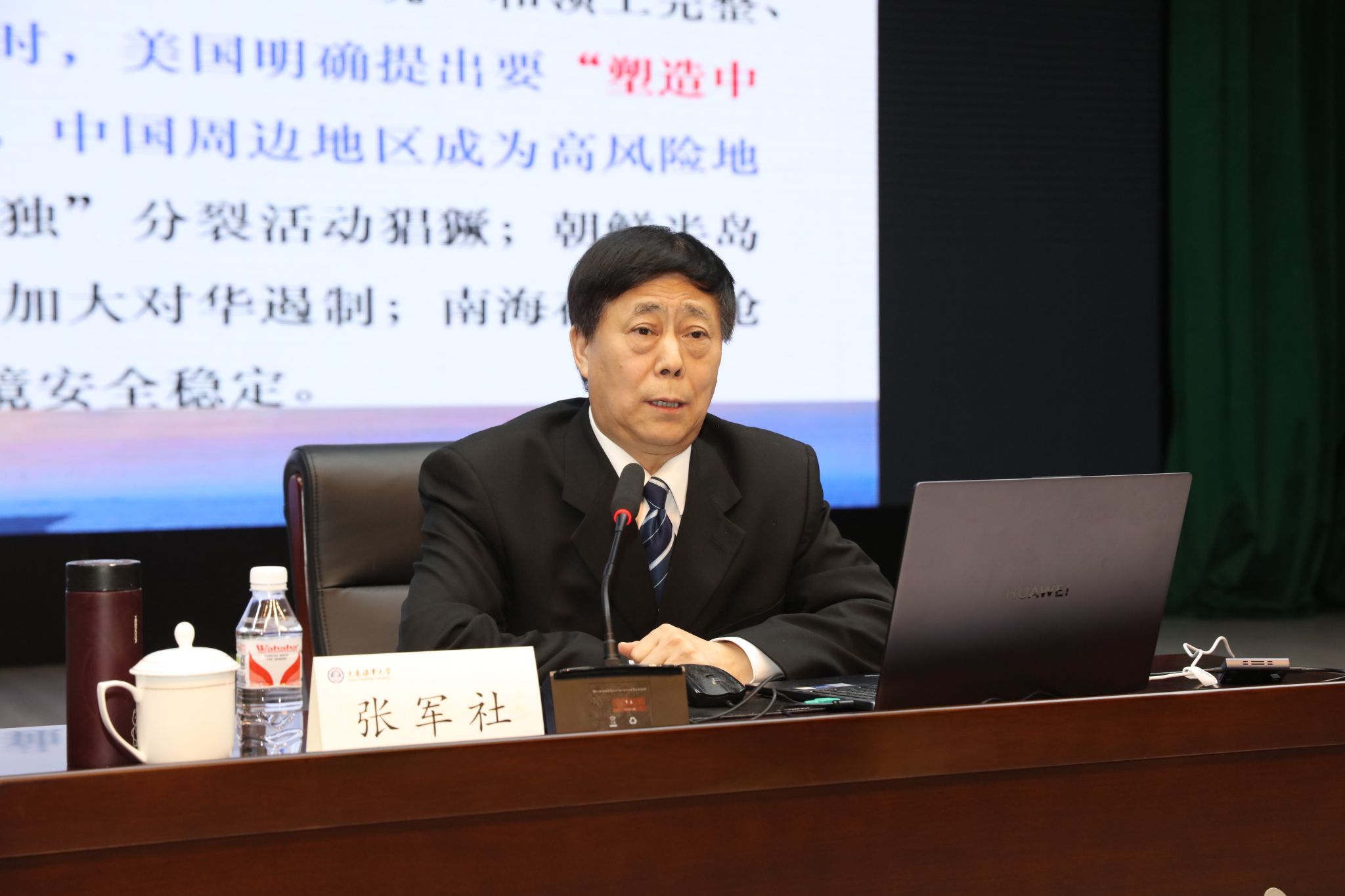 为深入贯彻落实习近平总书记关于加强国家安全教育的重要指示批示精神,落实《全省教育系统2024年全民国家安全教育日活动工作方案》要求,4月10日下午,我校邀请海军研究院研究员张军社大校在东山礼堂作“大国竞争背景下的中国国家安全问题”专题讲座。副校长赵友涛出席讲座,并代表学校为张军社颁授“海大讲坛”纪念牌。学校相关部门、学院负责人,各学院主管学生工作副书记,全体专兼职指导员和学生代表参加讲座。