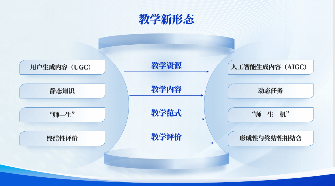 “数智课程”建设是人工智能赋能高等欧亿体育·(中国)官方网站改革的重要组成部分,其依托知识图谱或(和)大模型技术,塑造了课程教学的新形态,实现了教学资源从用户生成内容(UGC)向人工智能生成内容(AIGC)转变,教学内容从静态知识向动态任务转变,教学范式从“师-生”向“师-生-机”转变,教学评价从终结性向形成性与终结性相结合转变。